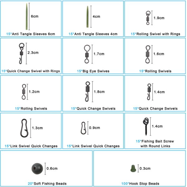 3.Different kinds of carp fishing swivels and snaps meet with your different fishing requirement. Great for Carp Fishing.